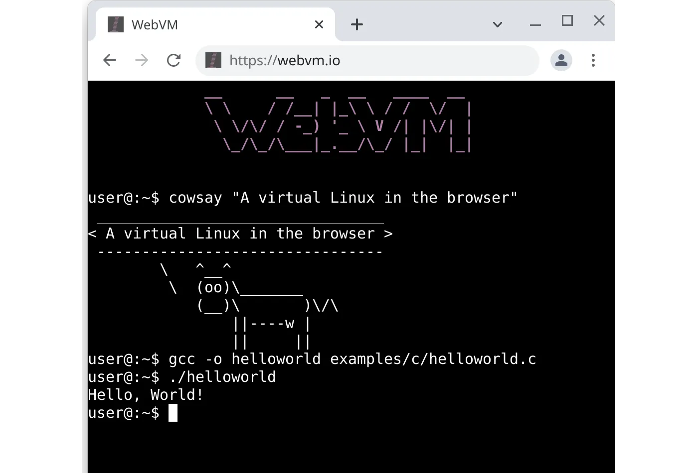 TL;DR — We made a server-less virtual Linux environment that runs unmodified Debian binaries in the browser. This is powered by CheerpX, a WebAssembly virtualization platform. Feel free to play with it and report bugs: https://webvm.io