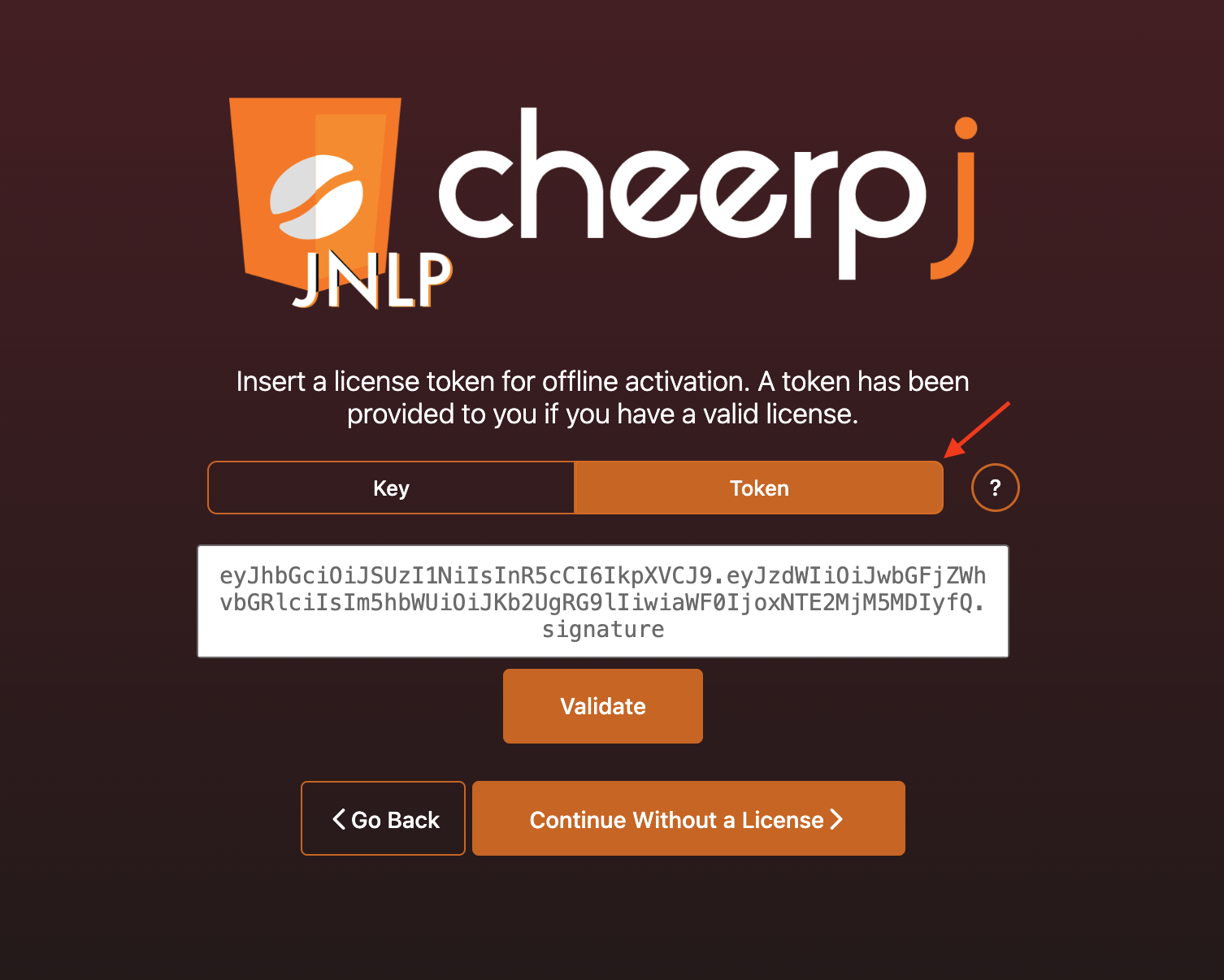 • License Token: If you received a license token, typically for technical evaluations or organizational licenses — see the Offline activation via License Token section.